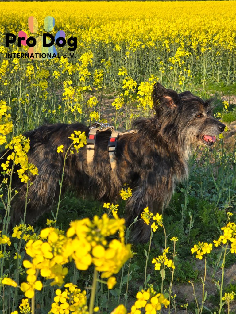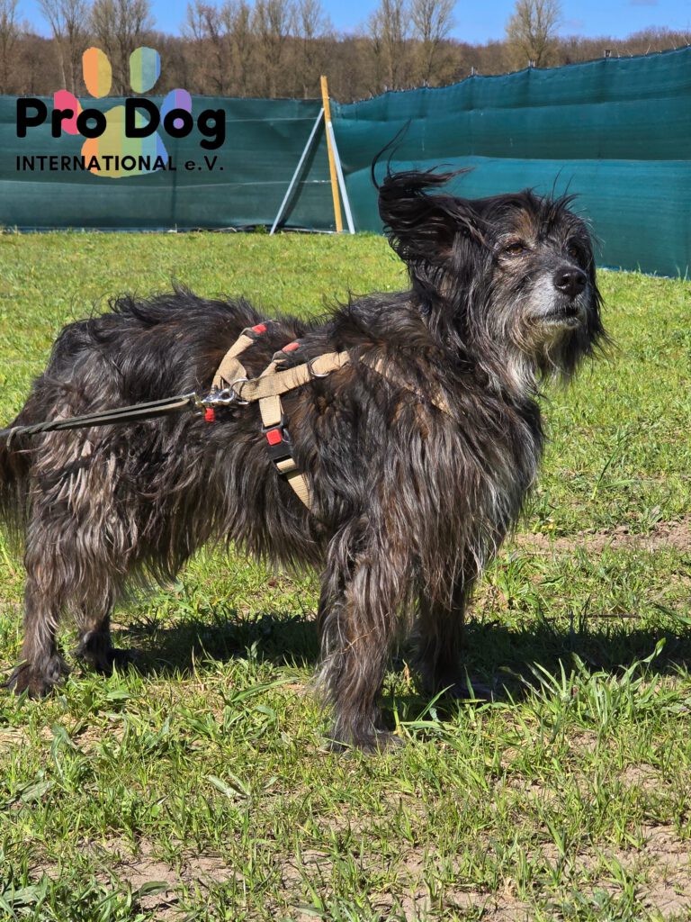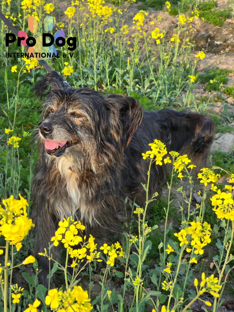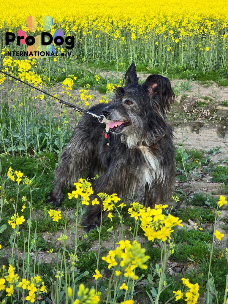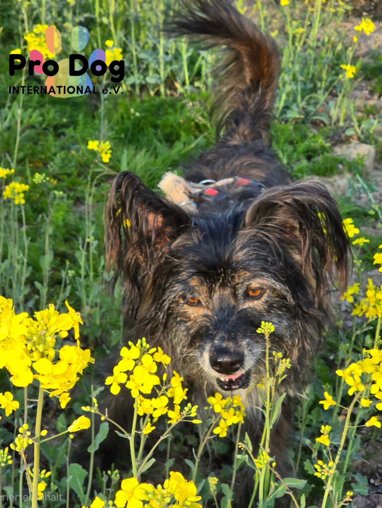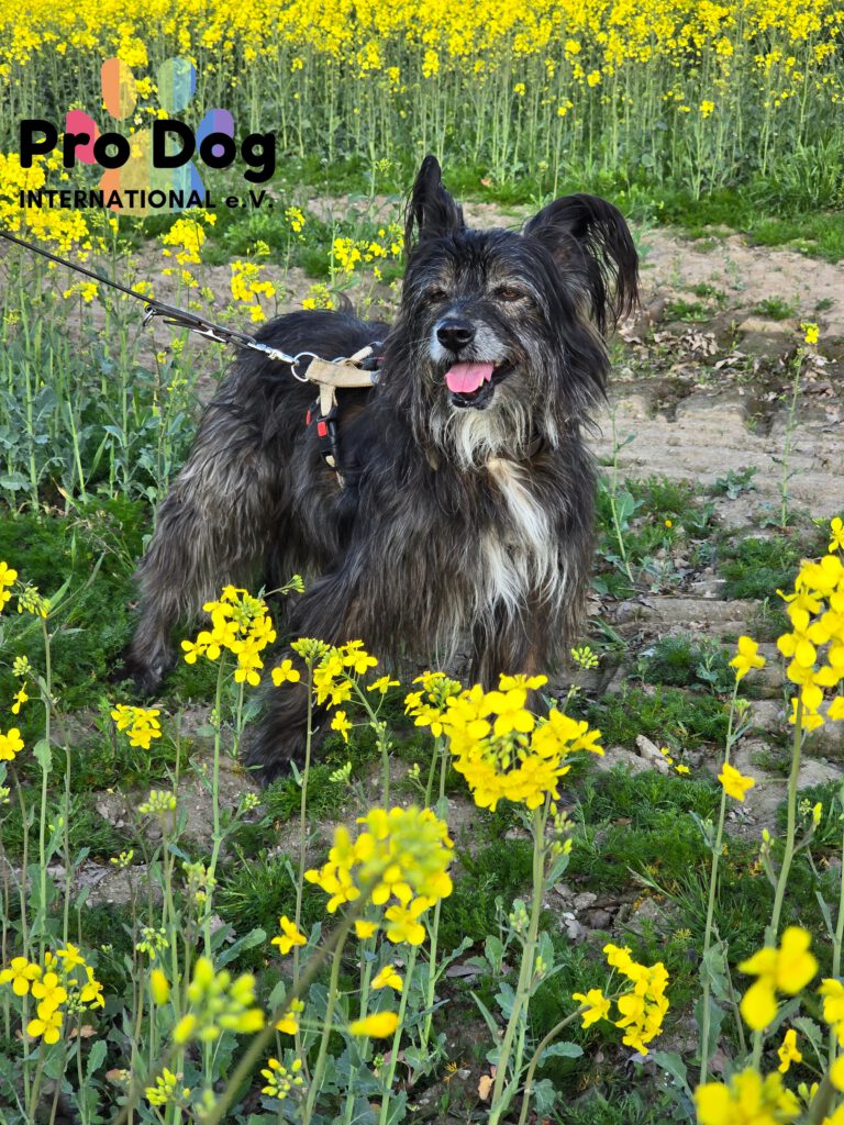 Unsere Betty befindet sich seit einem guten Jahr auf Pflegestelle. Sie ist eine “wilde Brunhilde” und einem Rucksack Vergangenheit. Betty ist wahrscheinlich ein Berger des Pyrénées Mix, da sie einen Hüte- und Jagdtrieb hat.