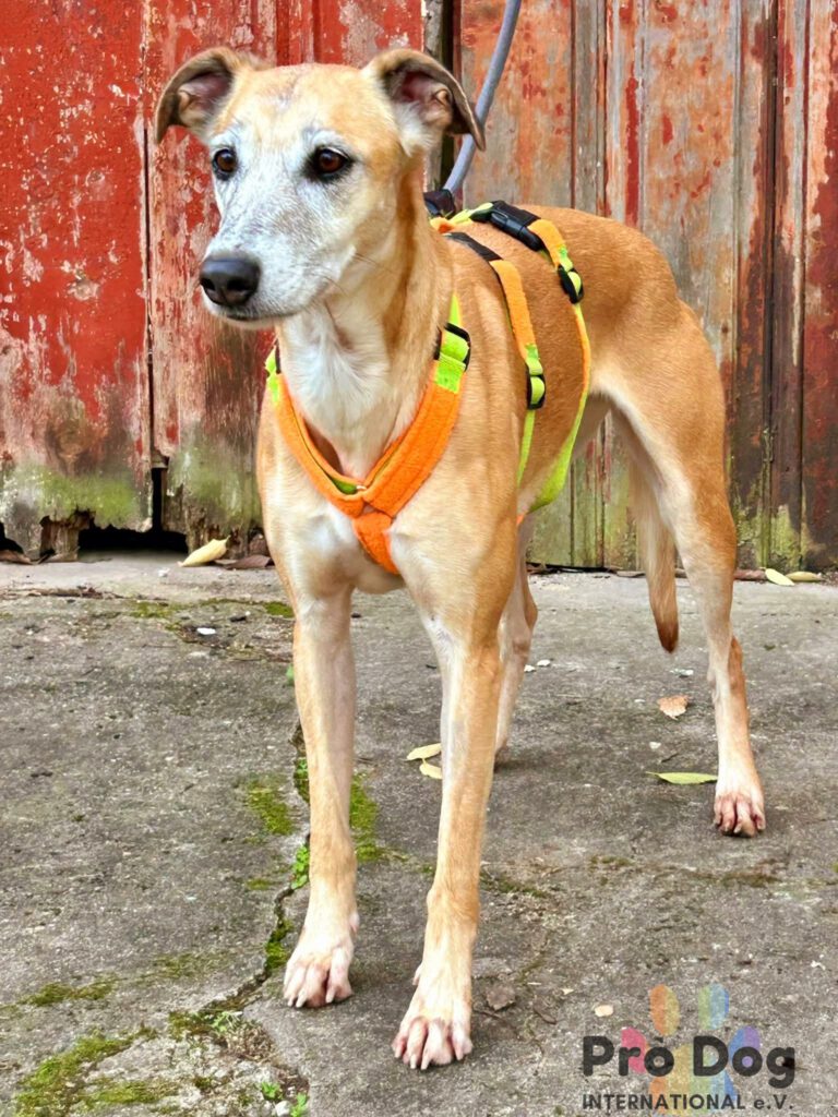 Estrela ist eine wunderschöne, unkomplizierte und angstfreie Galgo-Mischlingshündin, die ihr neues Zuhause sucht. Sie ist Menschen gegenüber super freundlich. Zudem ist Estrela sozial verträglich mit anderen Hunden, wobei ihr Rüden sympathischer sind.