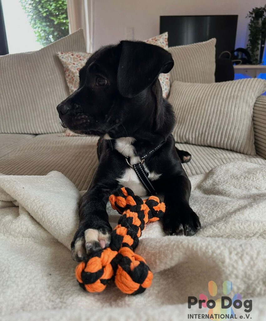 Sharik wurde diesen Monat 5 Monate alt und ist ein kleiner Wirbelwind. Er zeigt ein junghundtypisches Verhalten. Er testet seine Grenzen aus, ist verspielt und voller Energie. Was er toll findet, ist Ballspielen und Tauziehen. Sharik geht gerne spazieren und entdeckt die Natur.