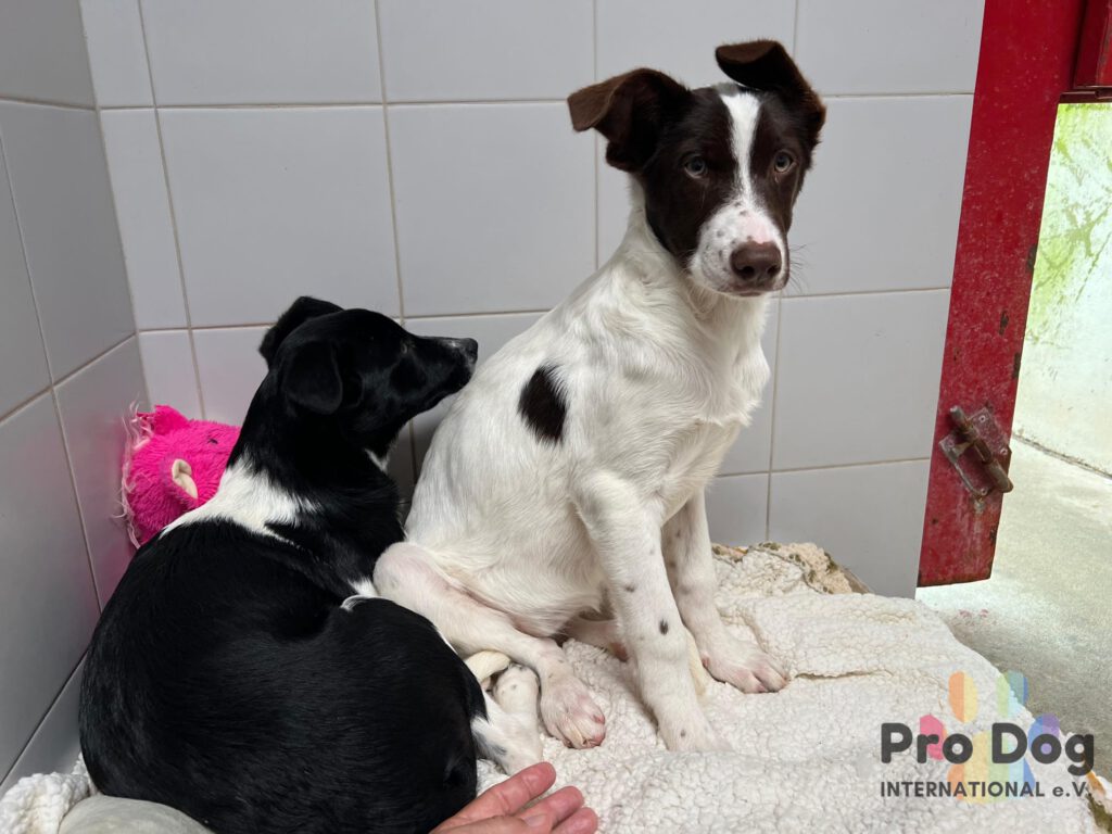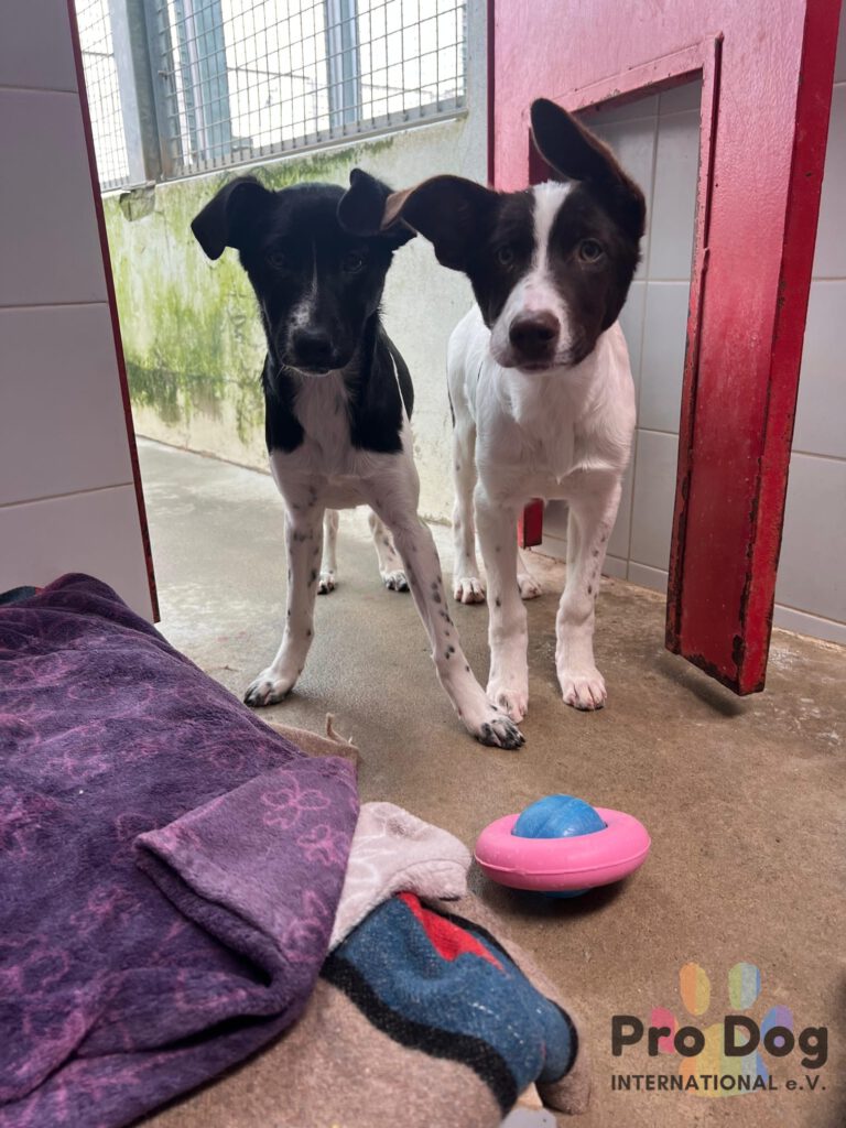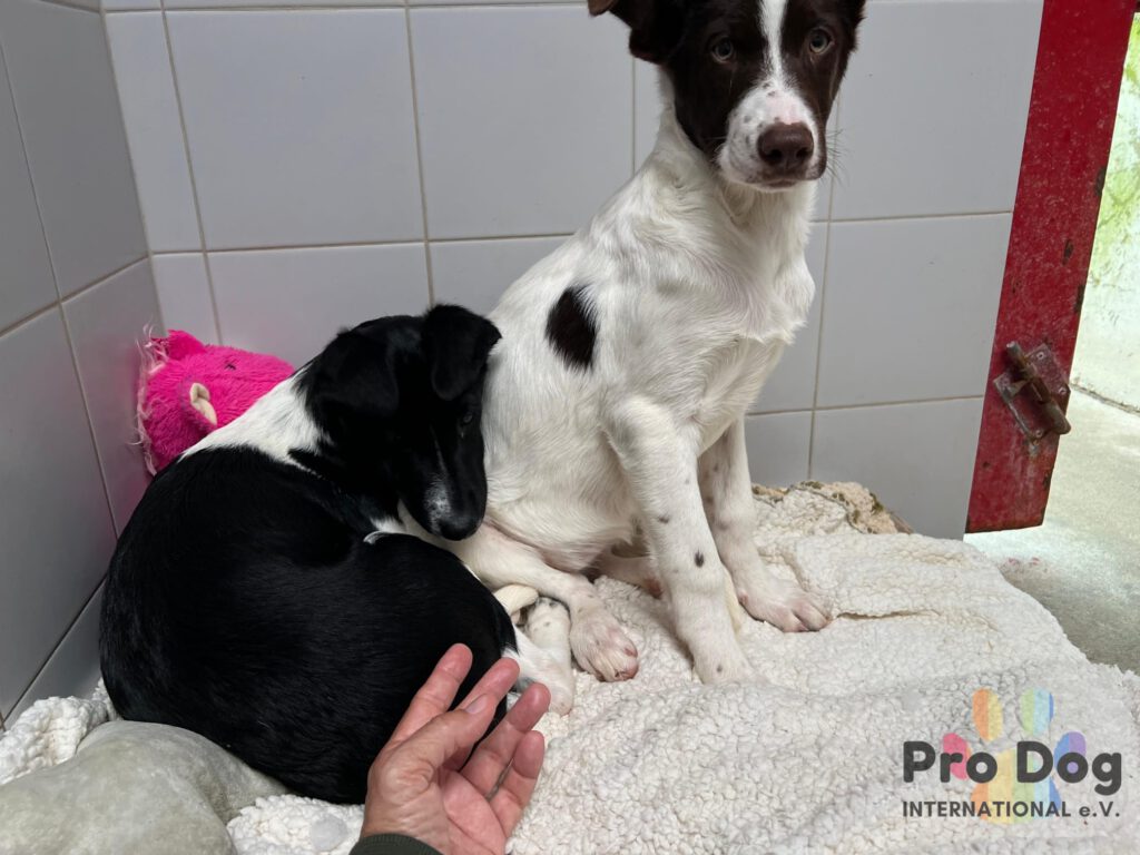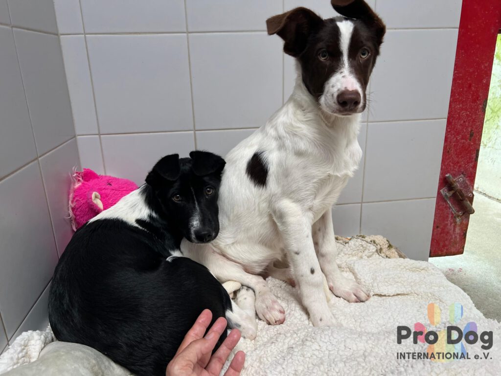 Erfreulicherweise zeigen sie bereits kleine Fortschritte. Die zwei sind mittlerweile mutig genug, um Leckerlies aus der Hand zu nehmen.