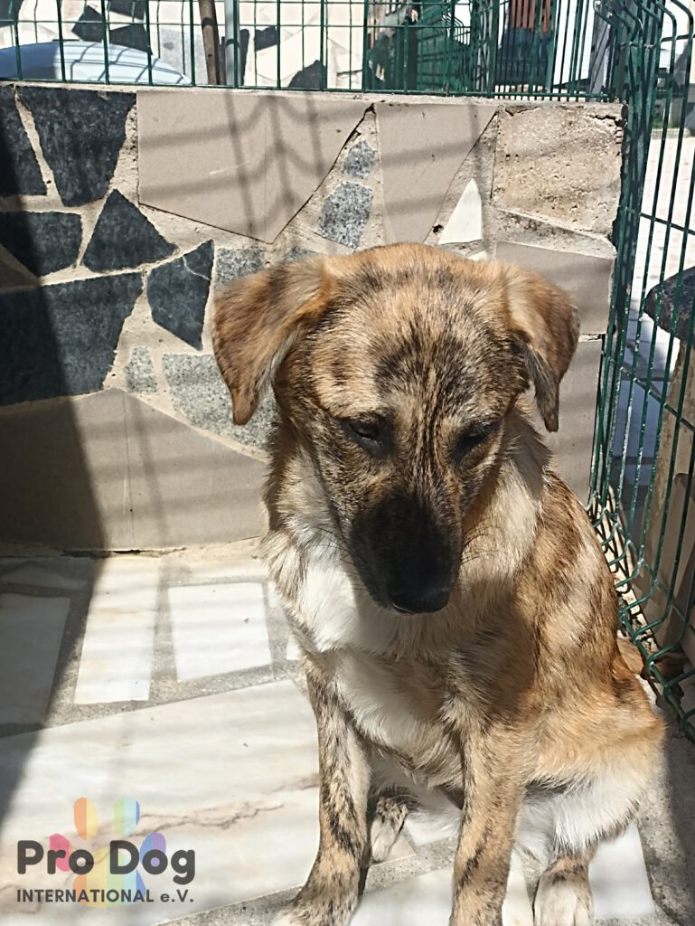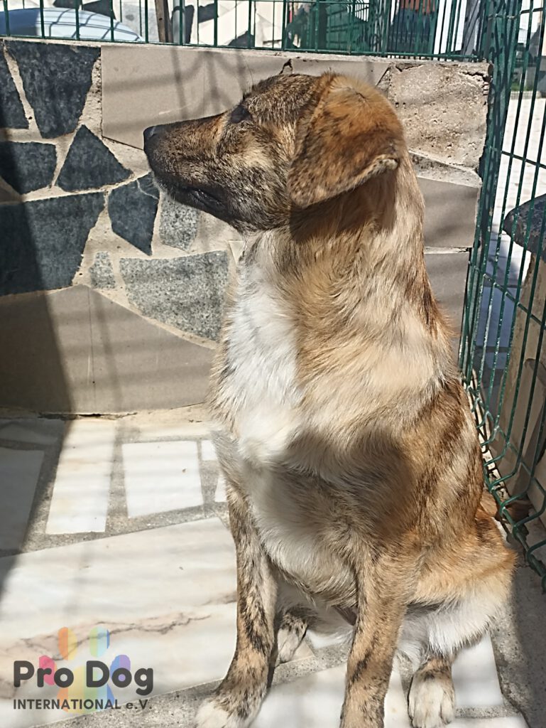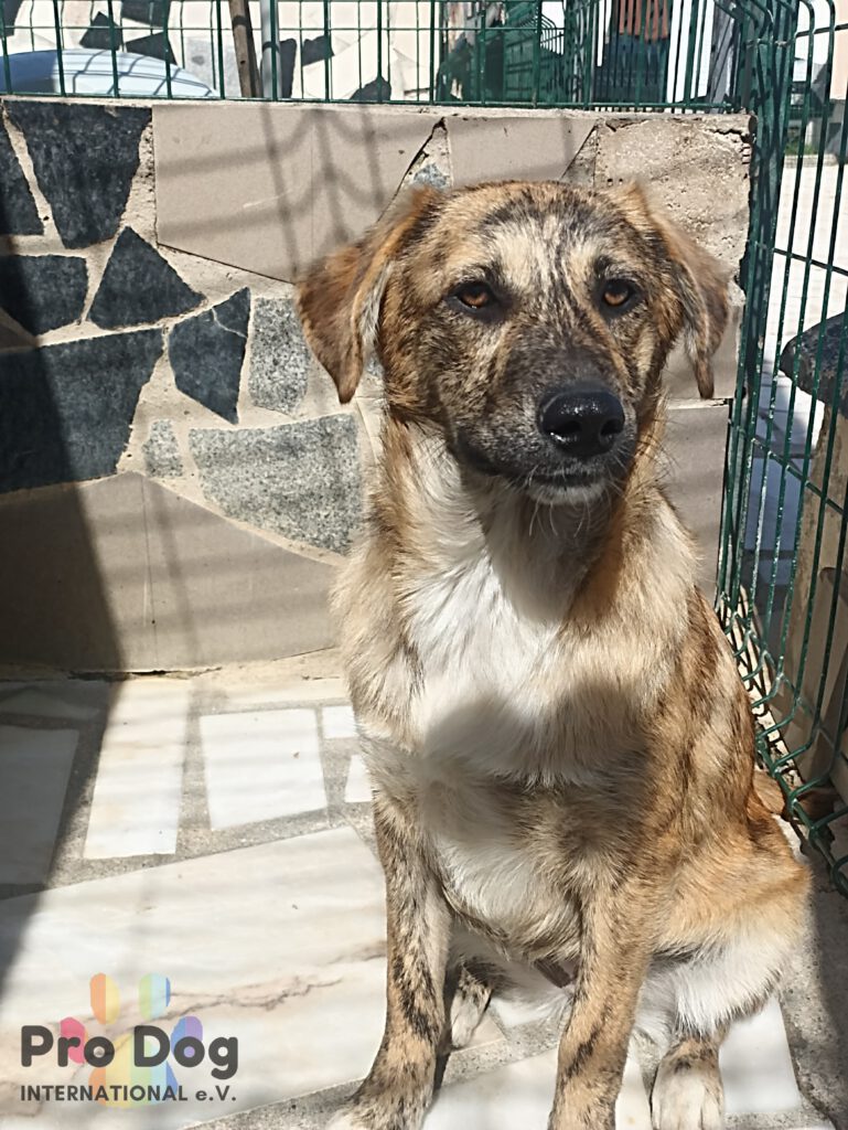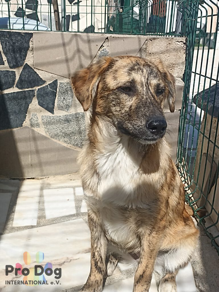 Tigre ist eine freundliche junge Hündin und befand sich im öffentlichen Shelter. Zur Zeit ist sie noch ein bisschen schüchtern, aber sehr lieb. Die junge Dame muss lernen, dass sie Vertrauen darf und dass sie in Sicherheit ist. Mit den anderen Hunden im Shelter versteht sich Tigre gut und zeigt sich sozial.