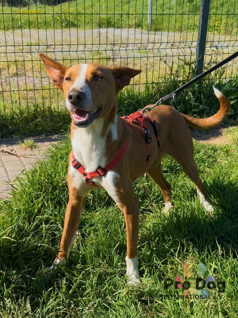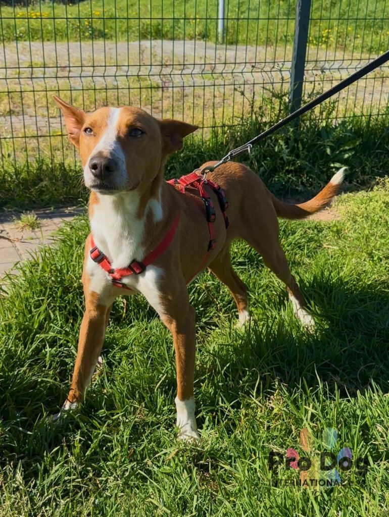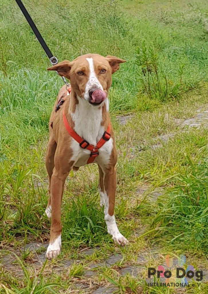 Zulu, ein wunderschöner Podenco mit rehbraunen Augen und einem tollen Charakter, der auf der Suche nach seinem neuen Zuhause ist. Er ist ein liebevoller junger Hund, der gerne kuschelt und die Nähe sucht. Bei Spaziergängen läuft er gut an der Leine. Mit anderen Hunden zeigt er sich sozial und verspielt.